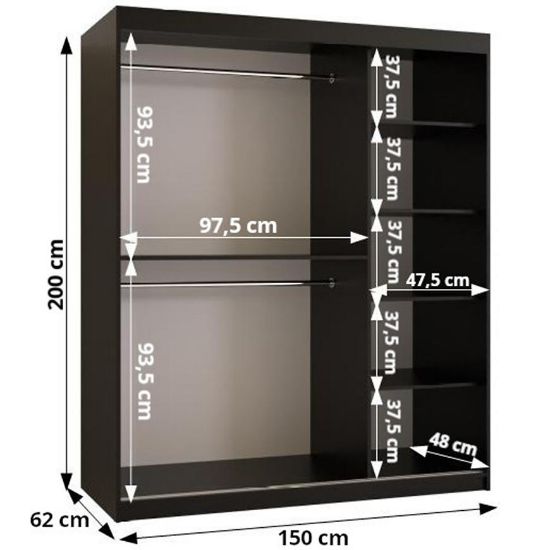 Szafa Rawang to arcydzieło funkcjonalnego designu, łączące elegancję z funkcjonalnością. Szafa o wymiarach 150x200x62 cm jest idealnym rozwiązaniem dla tych, którzy poszukują stylowego i efektywnego miejsca do przechowywania.