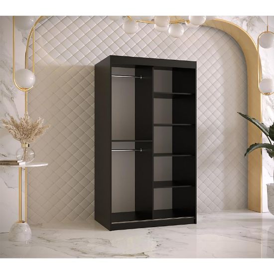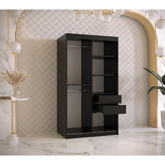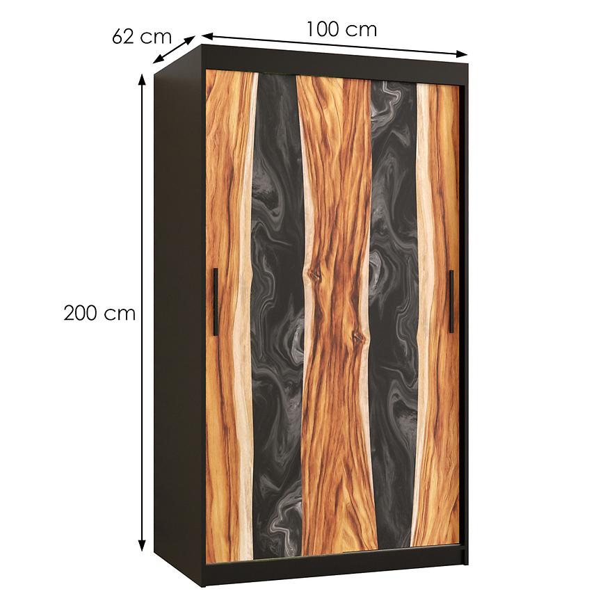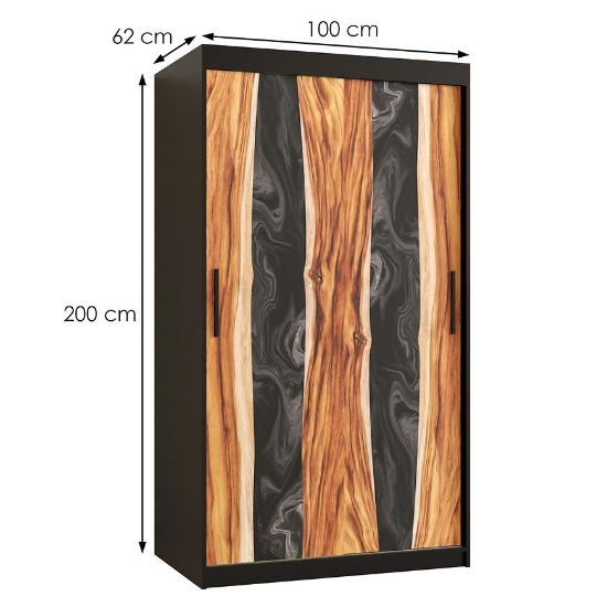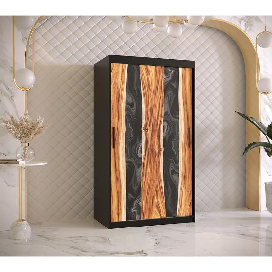 Szafa Resin I to doskonałe połączenie funkcjonalności, stylu i trwałości. Jej dwudrzwiowa konstrukcja z drzwiami przesuwnymi zapewnia łatwy dostęp do wnętrza, jednocześnie oszczędzając miejsce w pomieszczeniu. Kolor frontów utrzymany w drewnopodobnym wzorze nadaje szafie elegancki i naturalny wygląd, podczas gdy czarny korpus dodaje charakteru.