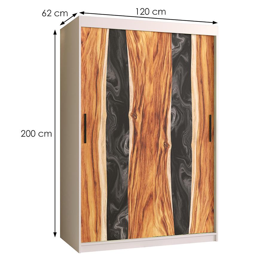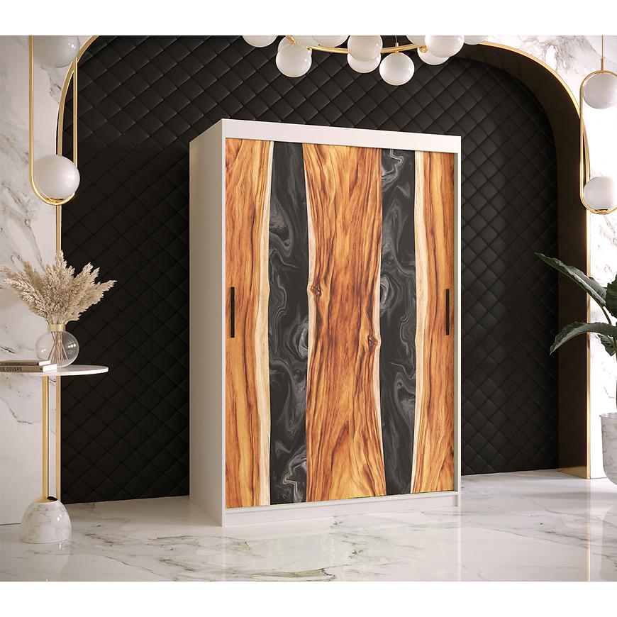 Wzór na frontach szafy nie jest jedynie naklejką – to autentyczna manifestacja jakości. Płaskie i gładkie powierzchnie tworzą elegancką całość, nadając pomieszczeniu wyjątkowy charakter. Prowadnice aluminiowe gwarantują płynne przesuwanie drzwi, sprawiając, że korzystanie z szafy staje się komfortowym doświadczeniem.