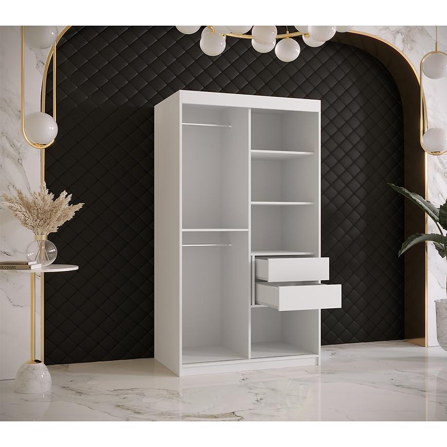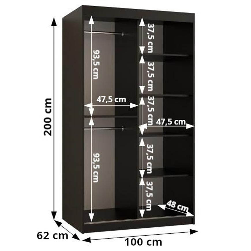 Dwudrzwiowy segment z drzwiami przesuwnymi oferuje wyjątkową przestrzeń przechowywania z myślą o Twoich potrzebach. Wnętrze szafy zostało inteligentnie zaprojektowane, wyposażone w dwa praktyczne drążki na ubrania, umożliwiające zorganizowanie garderoby w sposób funkcjonalny i estetyczny.