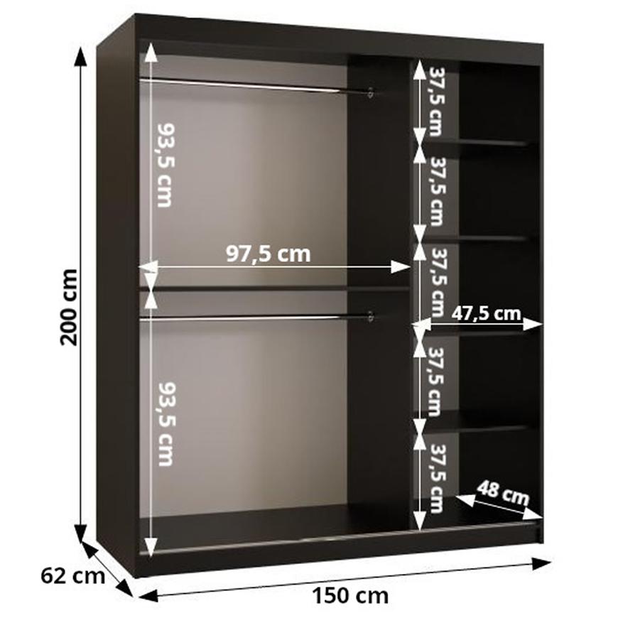 Dwudrzwiowy segment z drzwiami przesuwnymi oferuje wyjątkową przestrzeń przechowywania z myślą o Twoich potrzebach. Wnętrze szafy zostało inteligentnie zaprojektowane, wyposażone w dwa praktyczne drążki na ubrania, umożliwiające zorganizowanie garderoby w sposób funkcjonalny i estetyczny.