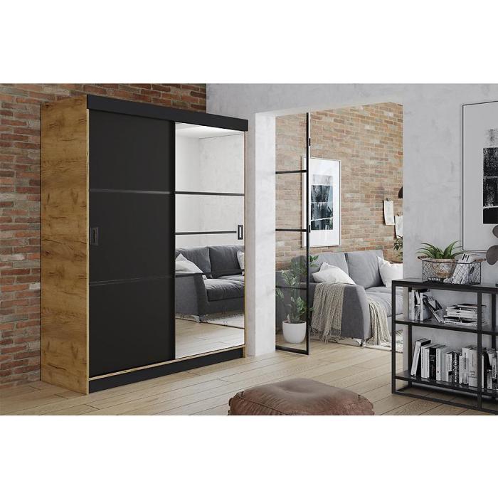 Szafa przesuwna Retro to propozycja do pokoju dziennego, ale znajdzie swoje miejsce również w innym pomieszczeniu, jak na przykład - przedpokój czy garderobie. Materiał wykonania to płyta wiórowa laminowana. Szafa posiada półki oraz drążek na ubrania. Mebel posiada lustro, które sprawi, że pomieszczenie stanie się optycznie większe. Nowoczesny styl mebli wpadnie do gustu każdemu, kto poszukuje eleganckiego, klasycznego, a zarazem nowoczesnego umeblowania. Idealnie wpasuje się w większość aranżacji. Przeznaczona do samodzielnego montażu.