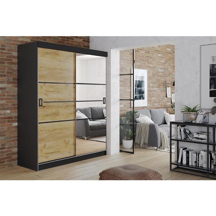 Szafa przesuwna Retro to propozycja do pokoju dziennego, ale znajdzie swoje miejsce również w innym pomieszczeniu, jak na przykład - przedpokój czy garderobie. Materiał wykonania to płyta wiórowa laminowana. Szafa posiada półki oraz drążek na ubrania. Mebel posiada lustro, które sprawi, że pomieszczenie stanie się optycznie większe. Nowoczesny styl mebli wpadnie do gustu każdemu, kto poszukuje eleganckiego, klasycznego, a zarazem nowoczesnego umeblowania. Idealnie wpasuje się w większość aranżacji. Przeznaczona do samodzielnego montażu.