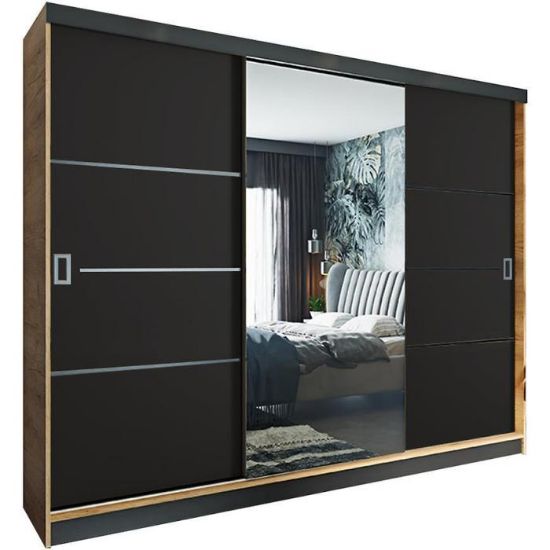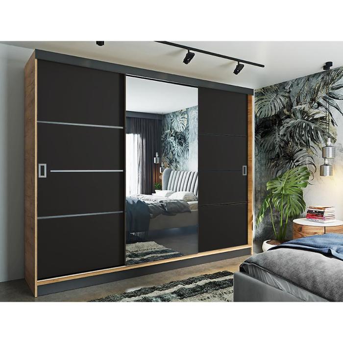 Szafa przesuwna Retro to propozycja do pokoju dziennego, ale znajdzie swoje miejsce również w innym pomieszczeniu, jak na przykład - przedpokój czy garderobie. Materiał wykonania to płyta wiórowa laminowana. Szafa posiada lustro, które sprawi, że pomieszczenie stanie się optycznie większe. Nowoczesny styl mebli wpadnie do gustu każdemu, kto poszukuje eleganckiego, klasycznego, a zarazem nowoczesnego umeblowania. Idealnie wpasuje się w większość aranżacji. Przeznaczona do samodzielnego montażu.
