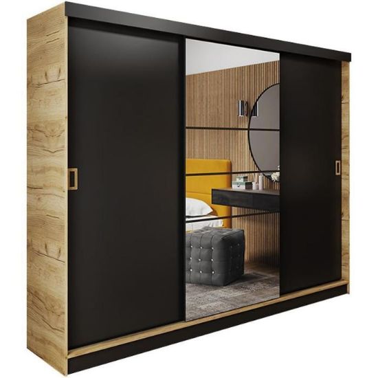 Szafa przesuwna Retro to propozycja do pokoju dziennego, ale znajdzie swoje miejsce również w innym pomieszczeniu, jak na przykład - przedpokój czy garderobie. Materiał wykonania to płyta wiórowa laminowana. Szafa posiada lustro, które sprawi, że pomieszczenie stanie się optycznie większe. Nowoczesny styl mebli wpadnie do gustu każdemu, kto poszukuje eleganckiego, klasycznego, a zarazem nowoczesnego umeblowania. Idealnie wpasuje się w większość aranżacji. Przeznaczona do samodzielnego montażu.