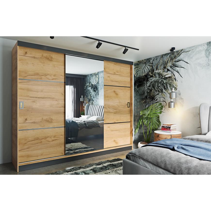 Trzydrzwiowe rozwiązanie umożliwia szerokie możliwości przechowywania, organizując przestrzeń w sposób efektywny i zgodny z indywidualnymi potrzebami. Drążek ułatwia utrzymanie porządku, tworząc przyjazne miejsce do przechowywania ubrań i akcesoriów.
