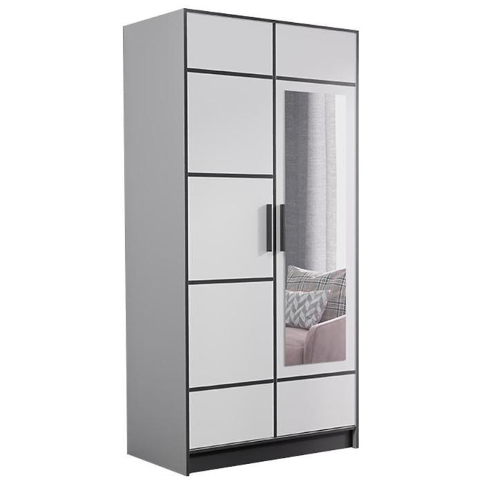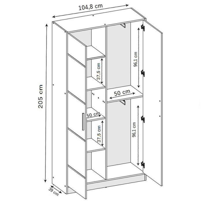 Szafa uchylna Roj to propozycja do pokoju dziennego, ale znajdzie swoje miejsce również w innym pomieszczeniu, jak na przykład - przedpokój czy garderobie. Materiał wykonania to płyta wiórowa laminowana. Szafa posiada półki oraz drążek na ubrania. Mebel posiada lustro, które sprawi, że pomieszczenie stanie się optycznie większe. Nowoczesny styl mebli wpadnie do gustu każdemu, kto poszukuje eleganckiego, klasycznego, a zarazem nowoczesnego umeblowania. Idealnie wpasuje się w większość aranżacji. Przeznaczona do samodzielnego montażu.