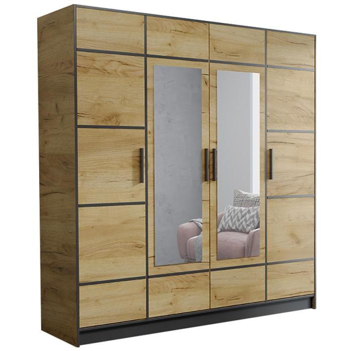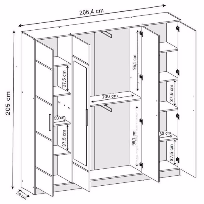 Szafa uchylna Roj to propozycja do pokoju dziennego, ale znajdzie swoje miejsce również w innym pomieszczeniu, jak na przykład - przedpokój czy garderobie. Materiał wykonania to płyta wiórowa laminowana. Szafa posiada półki oraz drążek na ubrania. Mebel posiada lustro, które sprawi, że pomieszczenie stanie się optycznie większe. Nowoczesny styl mebli wpadnie do gustu każdemu, kto poszukuje eleganckiego, klasycznego, a zarazem nowoczesnego umeblowania. Idealnie wpasuje się w większość aranżacji. Przeznaczona do samodzielnego montażu.