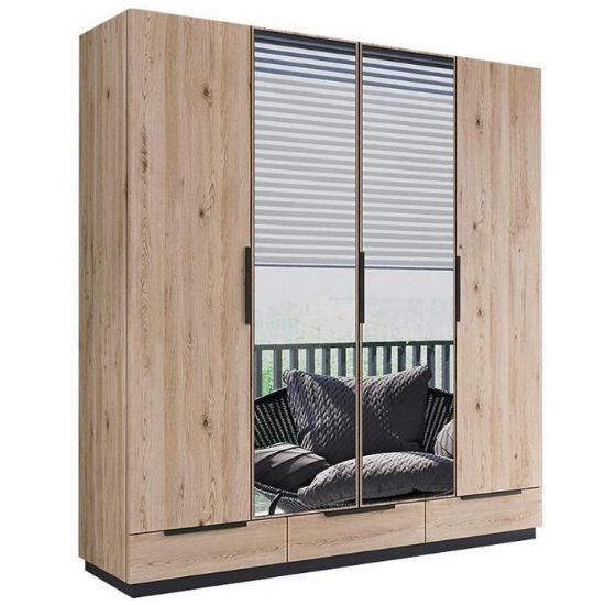 Szafa uchylna w kolorze dąb artisan z kolekcji Roksa to doskonała propozycja do pokoju dziennego, ale znajdzie swoje miejsce również w innym pomieszczeniu, jak na przykład - przedpokój czy garderobie, sypialni. Materiał wykonania to płyta laminowana. Szafa posiada półki, drążek na ubrania. Duża szafa posiada również lustro, które sprawi, że pomieszczenie stanie się optycznie większe. Wygląd szafy sprawi, że wpasuje się w większość aranżacji. Szafa będzie świetnym miejscem do wieszania ubrań, na buty lub inne domowe tekstylia. Nowoczesny styl mebli wpadnie do gustu każdemu, kto poszukuje eleganckiego, klasycznego, a zarazem nowoczesnego umeblowania. Szafa przeznaczona do samodzielnego montażu.