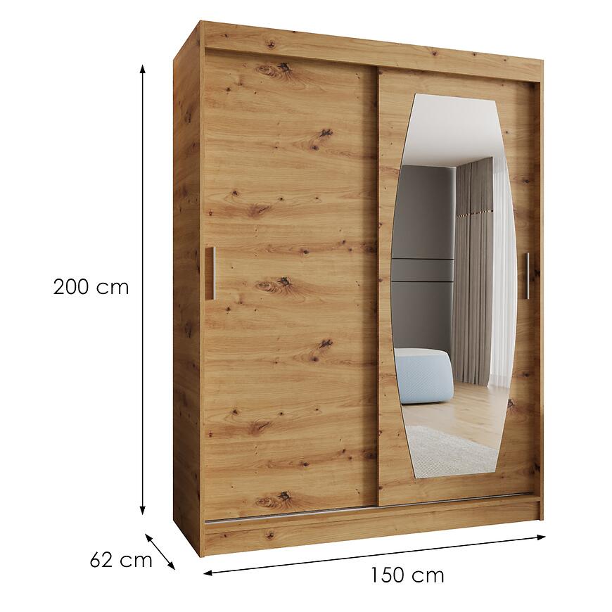 Szafa Rossa 150 artisan to idealne rozwiązanie dla osób szukających przestronnej, nowoczesnej i estetycznej szafy przesuwnej z lustrem, która wprowadzi do wnętrza przytulny, naturalny charakter.