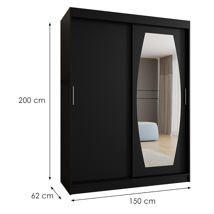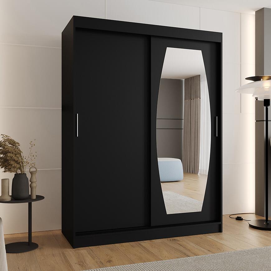 Czarna szafa Rossa 150 to propozycja dla osób ceniących elegancki design w połączeniu z praktycznością. Matowa czerń nadaje wnętrzu nowoczesny, minimalistyczny charakter, a wbudowane lustro zwiększa funkcjonalność mebla.