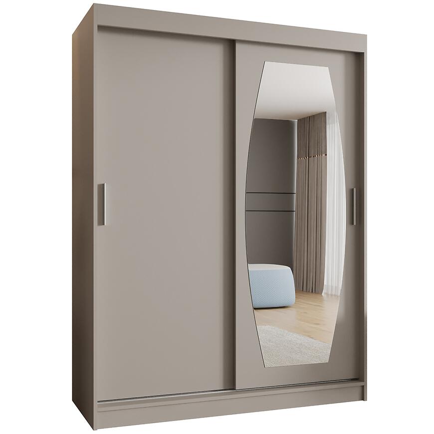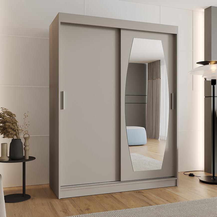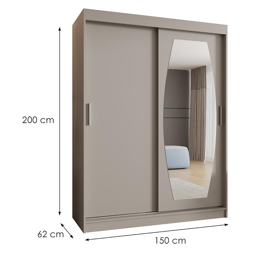 Szafa Rossa 150 kaszmir to idealny wybór dla osób poszukujących praktycznej, dwudrzwiowej szafy przesuwnej z lustrem w stonowanej, beżowej kolorystyce. Doskonale sprawdzi się jako mebel do sypialni lub garderoby, wprowadzając do wnętrza ciepło, porządek i harmonijną estetykę.