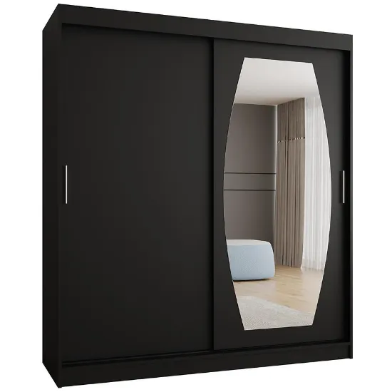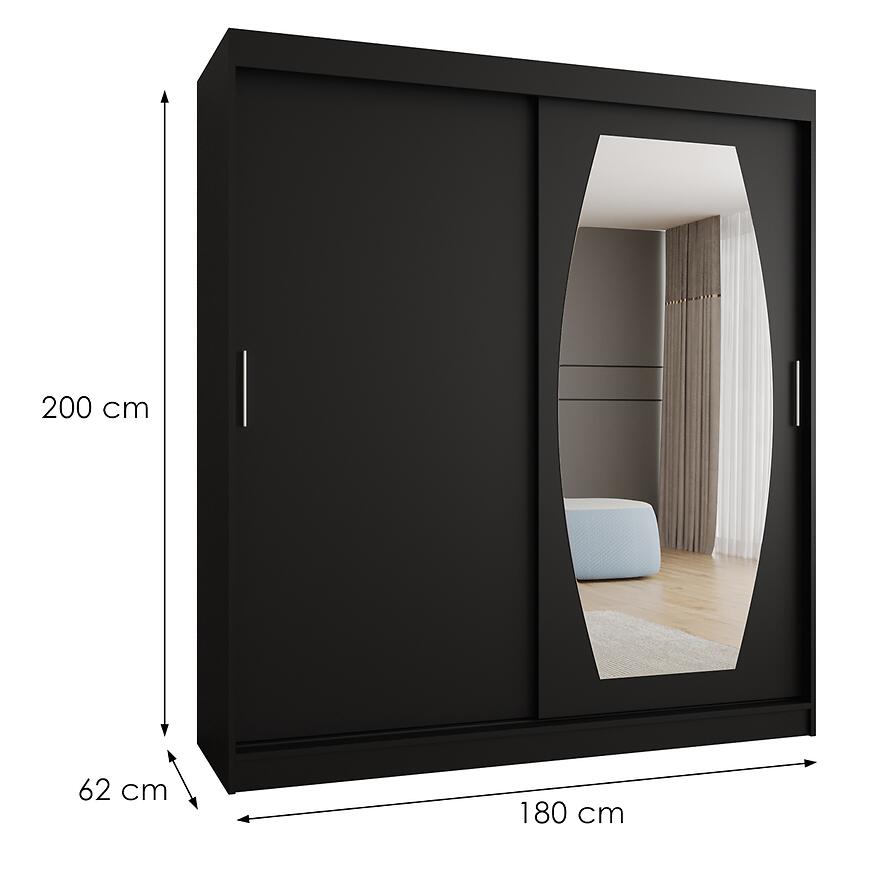 Szafa Rossa 180 czarny to idealny wybór dla osób poszukujących praktycznej, dwudrzwiowej szafy przesuwnej z lustrem. Doskonale sprawdzi się jako mebel do sypialni lub garderoby, wprowadzając do wnętrza wyrazistość, porządek i nowoczesny styl.