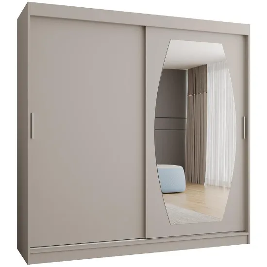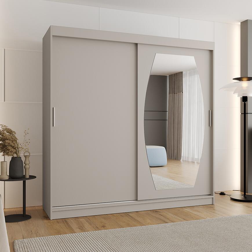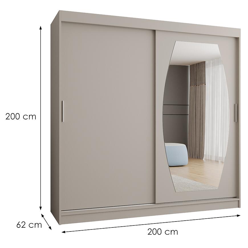 Szafa Rossa 200 kaszmir to idealny wybór dla osób poszukujących praktycznej, dwudrzwiowej szafy przesuwnej z lustrem. Doskonale sprawdzi się w sypialni lub garderobie, wprowadzając do wnętrza ciepło, porządek i harmonijną estetykę.