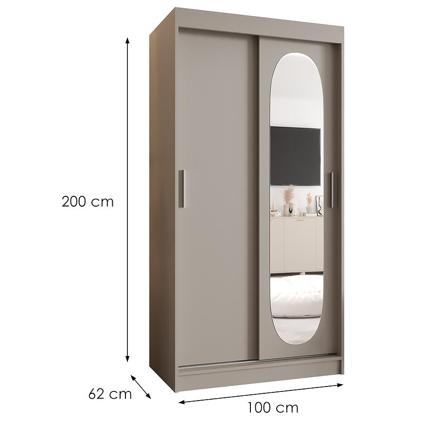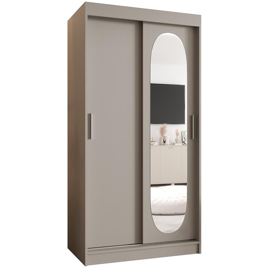 Szafa Royal 100 kaszmir to idealny wybór dla osób poszukujących praktycznej, dwudrzwiowej szafy przesuwnej z lustrem w stonowanej, beżowej kolorystyce. Doskonale sprawdzi się jako mebel do sypialni lub garderoby, wprowadzając do wnętrza ciepło, porządek i harmonijną estetykę.