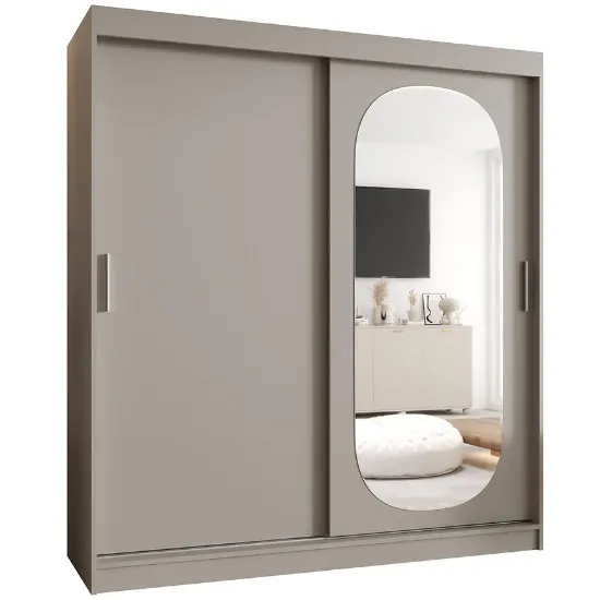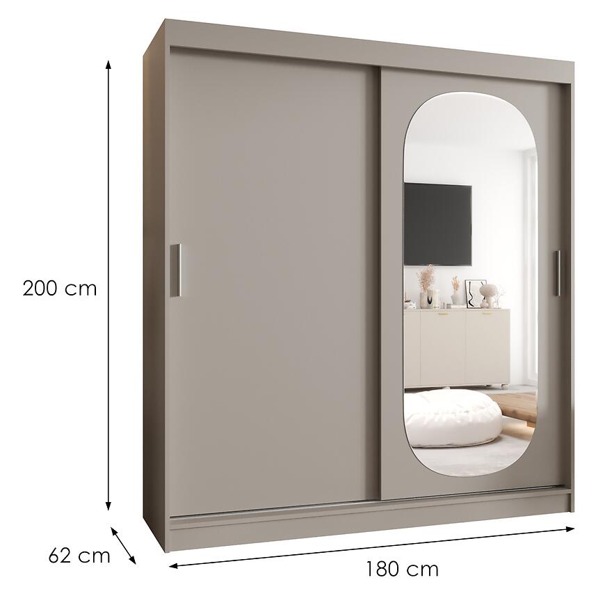 Szafa Royal 180 kaszmir to idealny wybór dla osób poszukujących praktycznej, dwudrzwiowej szafy przesuwnej z lustrem w stonowanej, beżowej kolorystyce. Doskonale sprawdzi się jako mebel do sypialni lub garderoby, wprowadzając do wnętrza ciepło, porządek i harmonijną estetykę.