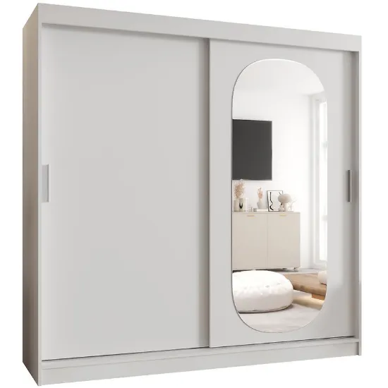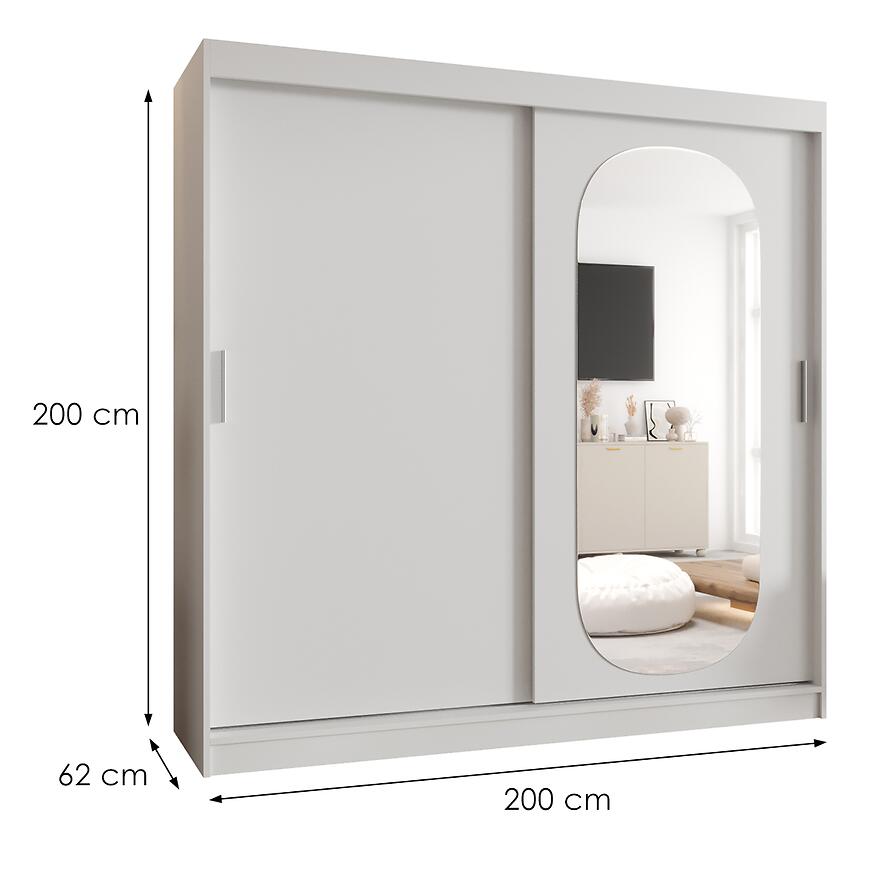 Szafa Royal 200 biały to idealny wybór dla osób poszukujących pojemnej szafy z lustrem, która łączy estetykę z praktycznym wykorzystaniem przestrzeni. Doskonale sprawdzi się jako główny mebel do przechowywania w sypialni lub funkcjonalna szafa do garderoby, podkreślając jasny i uporządkowany charakter wnętrza.