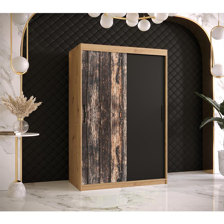 Szafa Rustic 120 w kolorze dąb artisan/czarny to nie tylko praktyczne rozwiązanie do przechowywania, ale także stylowy mebel, który wniesie do Twojego wnętrza niepowtarzalny charakter.