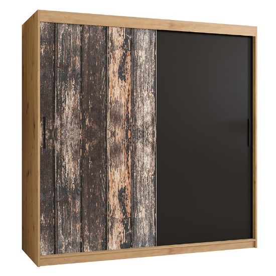 Szafa Rustic 180 w kolorze dąb artisan/czarny to nie tylko praktyczne rozwiązanie do przechowywania, ale także stylowy mebel, który wniesie do Twojego wnętrza niepowtarzalny charakter.