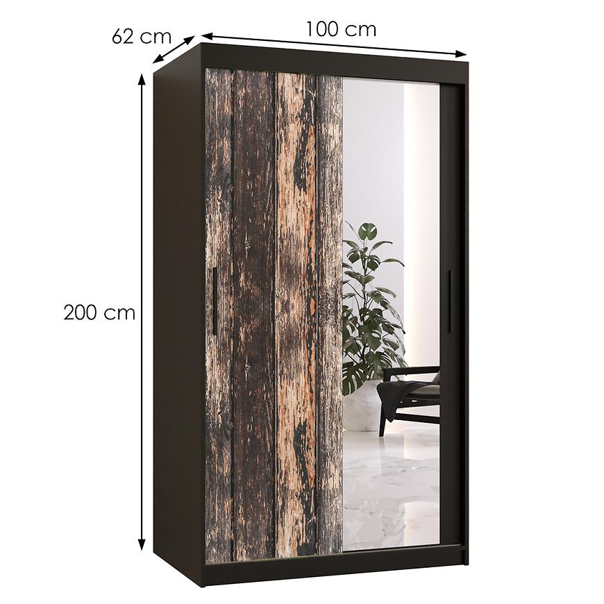 Z imponującymi wymiarami - 100 cm szerokości, 200 cm wysokości i 62 cm głębokości - szafa Rustic zapewni odpowiednią ilość miejsca do przechowywania, jednocześnie nadając wnętrzu wyjątkowego charakteru. Jej prosta forma harmonizuje z rustykalnym stylem, tworząc zgrany duet funkcjonalności i estetyki. Drzwi utrzymane w rustykalnym stylu nadają szafie unikatowego charakteru, a ich wzór nie jest jedynie naklejką, co podkreśla wysoką jakość wykonania. Dodatkowo, lustro umieszczone na froncie szafy dodaje przestrzeni i sprawia, że pomieszczenie wydaje się większe.