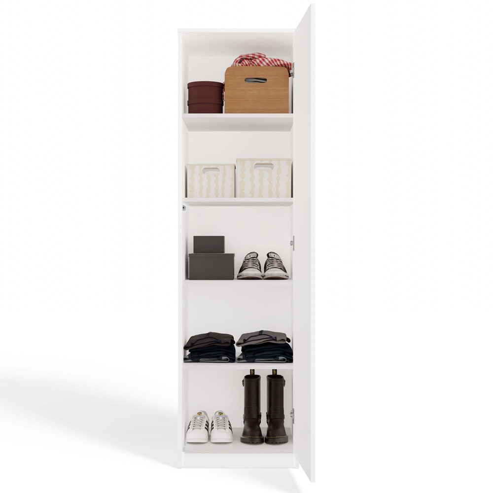 Szafa wyposażona jest w cztery półki oraz jeden drążek, których układ można dowolnie konfigurować podczas montażu – w zależności od indywidualnych potrzeb użytkownika. System TIP-ON pozwala na wygodne otwieranie drzwi bez uchwytów, zapewniając czysty i estetyczny wygląd frontu. Szafa Salomea z lustrem to doskonałe połączenie stylu, praktyczności i nowoczesnej formy, idealne do sypialni, przedpokoju czy garderoby.