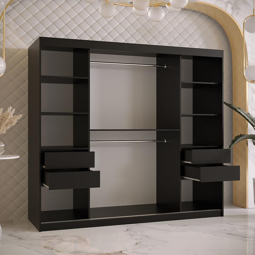 Szafa Sandakan to nie tylko praktyczne rozwiązanie, ale także designerski element wnętrza. Jej matowe fronty, drzwi przesuwne i solidna konstrukcja tworzą mebel, który doskonale wpisuje się w nowoczesny styl i stanowi centralny punkt w Twojej przestrzeni.