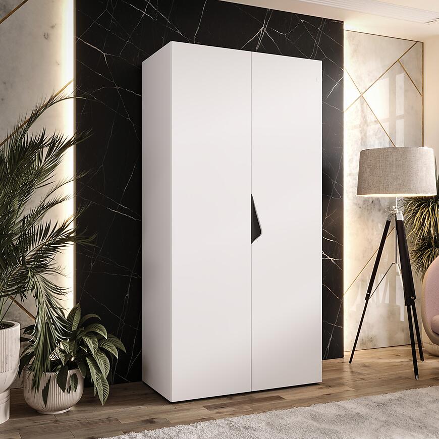Szafa Sandi 1-100 to propozycja dla osób, które cenią prostotę, elegancję i praktyczne rozwiązania w jednym meblu. Jej nowoczesny design z matowymi białymi frontami i korpusem nadaje wnętrzu lekkości i świeżości. Dwudrzwiowa konstrukcja pozwala wygodnie przechowywać ubrania i akcesoria, zachowując porządek i estetykę.