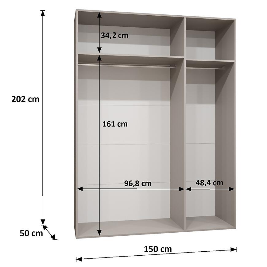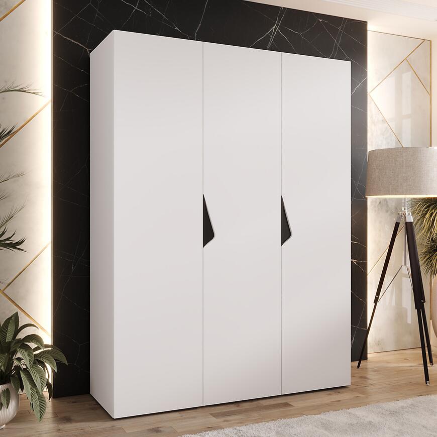 Szafa Sandi 1-150 w wersji biały/czarny to trzydrzwiowy mebel o prostym, nowoczesnym kształcie. Matowe fronty i korpus w odcieniu białym podkreślają minimalistyczny, elegancki charakter szafy.