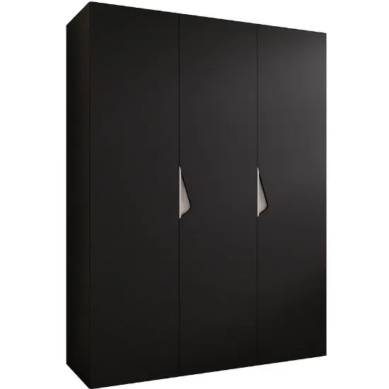 Szafa Sandi 1-150 czarny/kaszmir – nowoczesna trzydrzwiowa szafa bez lustra o szerokości 150 cm. Matowe czarne fronty i korpus zapewniają elegancki wygląd i funkcjonalność.
