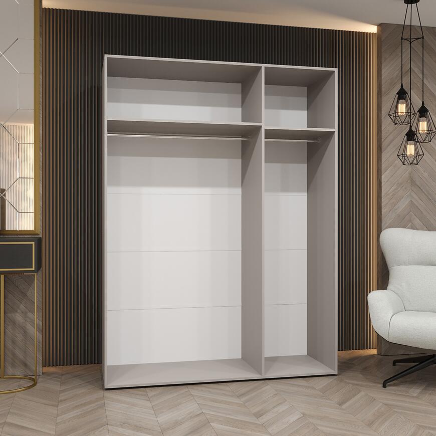 Szafa Sandi 1-150 ułatwia uporządkowanie odzieży i akcesoriów, zachowując elegancki wygląd i nowoczesny charakter.