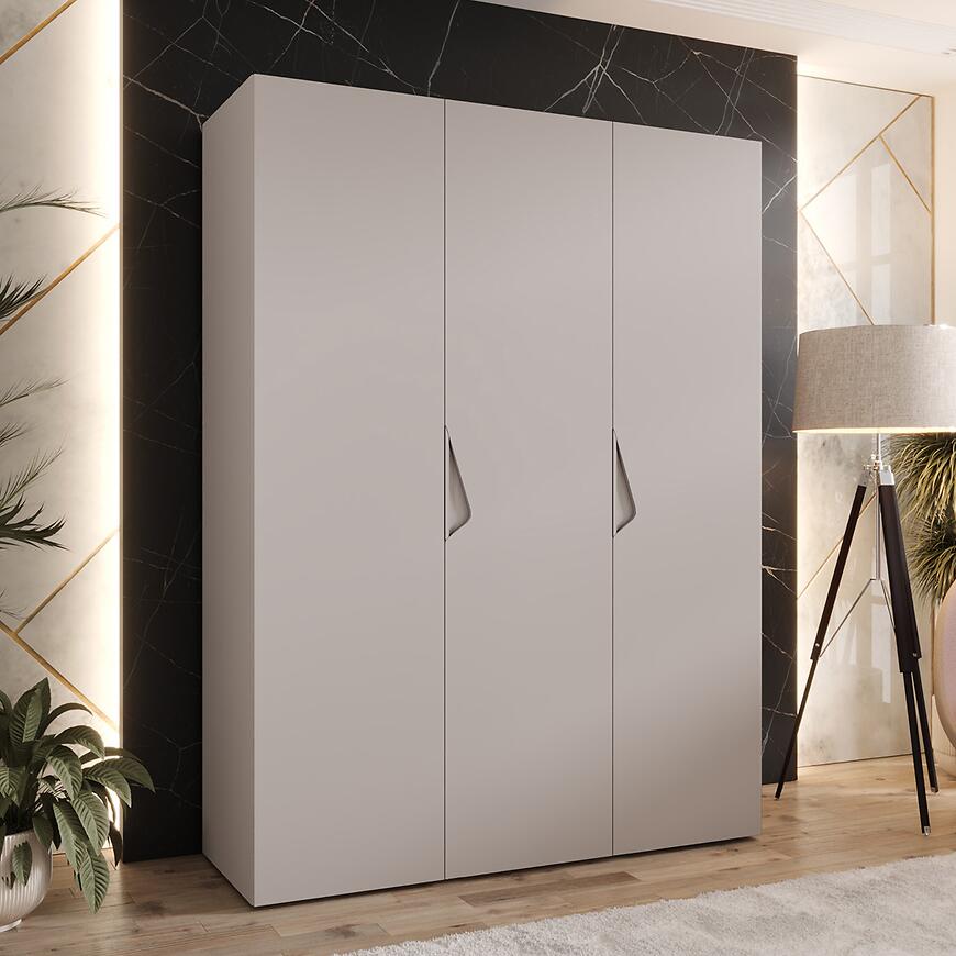 Szafa Sandi 1-150 kaszmir/kaszmir – trzydrzwiowa szafa bez lustra o szerokości 150 cm, matowe fronty i korpus w eleganckim kaszmirze, nowoczesny styl i trwała konstrukcja.