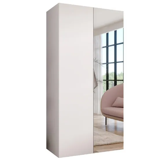Szafa Sandi 2-100 biały/kaszmir to nowoczesna, dwudrzwiowa szafa z lustrem, która łączy elegancki biały połysk z kaszmirowymi detalami, tworząc praktyczny i stylowy mebel do domu lub mieszkania.