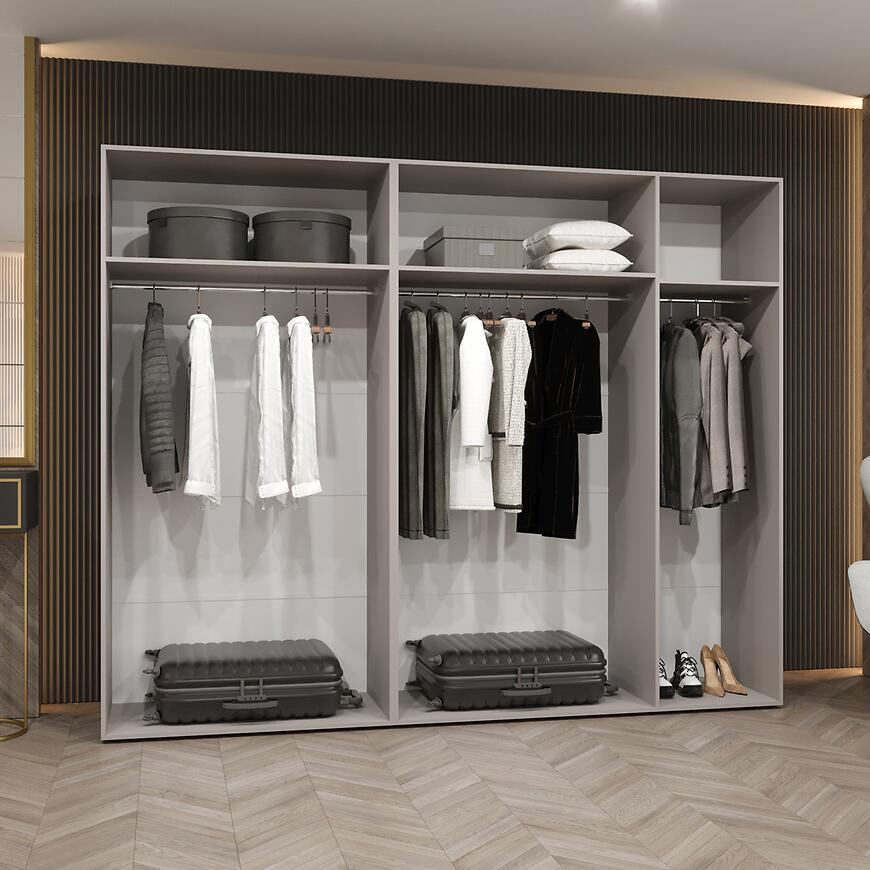 Szafa Sandi 2-250 kaszmir/czarny to stylowy i przestronny mebel zaprojektowany z myślą o wygodnym przechowywaniu ubrań i dodatków. Jej wymiary – szerokość 250 cm, wysokość 202 cm i głębokość 52 cm – pozwalają na komfortowe organizowanie garderoby w sypialni lub przedpokoju.