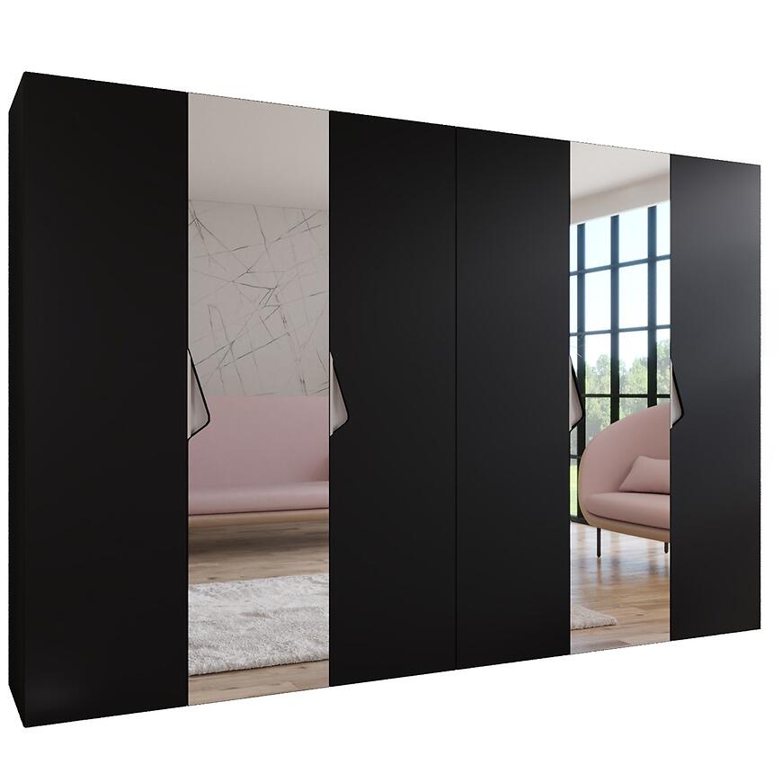 Szafa Sandi 2-300 (2x150) w wybarwieniu czarny/kaszmir to pojemny mebel o szerokości 300 cm, który zapewnia dużą przestrzeń do przechowywania. Kilkudrzwiowe, klasyczne fronty z lustrem ułatwiają korzystanie i dodają bryle lekkości.