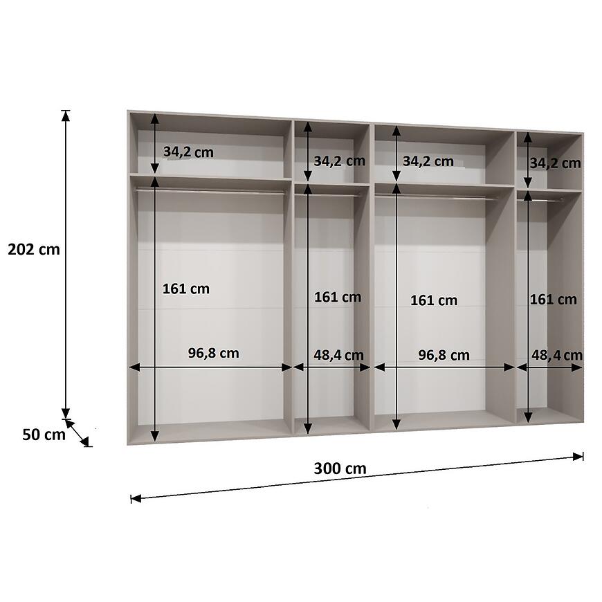 Szafa Sandi 2-300 (2x150) w kolorze czarny/złoty to efektowny mebel o imponującej szerokości 300 cm, który zapewnia maksymalną przestrzeń do przechowywania. Klasyczne, kilkudrzwiowe fronty z lustrem gwarantują wygodę użytkowania oraz nadają bryle lekkości.
