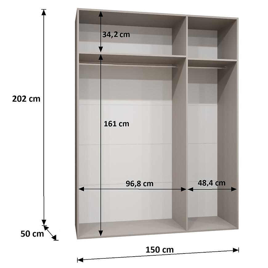 Szafa Sandi 3-150 została wykonana z wysokiej jakości płyt laminowanych – fronty z płyty laminowanej, korpus z płyty wiórowej laminowanej. Solidna konstrukcja gwarantuje trwałość i stabilność mebla przy codziennym użytkowaniu.