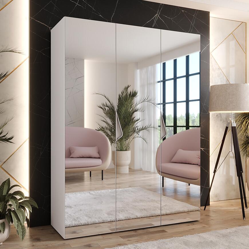 Szafa Sandi 3-150 biały/kaszmir – nowoczesna szafa z lustrem
