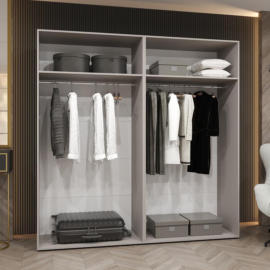 Brak wbudowanego oświetlenia nie ogranicza praktyczności, a możliwość samodzielnego złożenia ułatwia transport i montaż w domu. Szafa Sandi 3-200 biały/kaszmir to połączenie nowoczesności, elegancji i funkcjonalności.
