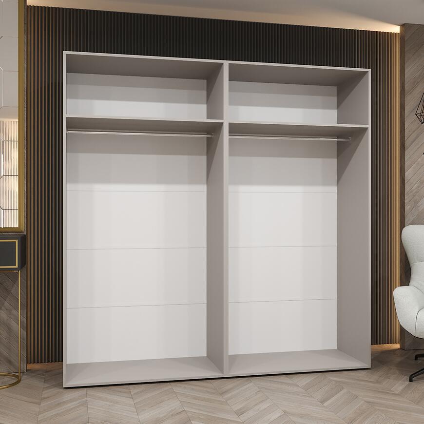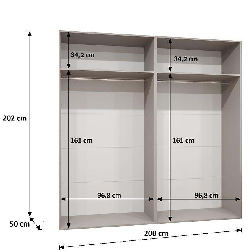 Szafa Sandi 3-200 została wykonana z wysokiej jakości płyt laminowanych – fronty z płyty laminowanej, korpus z płyty wiórowej laminowanej. Solidna konstrukcja zapewnia trwałość i stabilność mebla przy codziennym użytkowaniu.