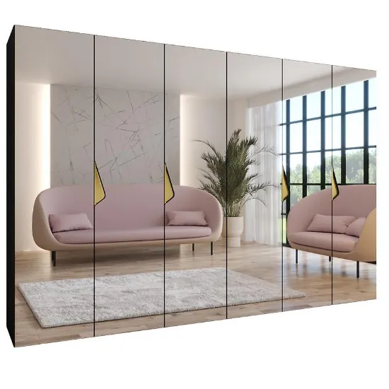 Szafa Sandi 3-300 czarny/złoty łączy głęboką czerń w połysku z subtelnym złotym detalem, tworząc wyjątkowo elegancki mebel. Kilkudrzwiowa konstrukcja z wbudowanym lustrem optycznie powiększa przestrzeń i zwiększa wygodę użytkowania, ułatwiając organizację przechowywanych rzeczy.