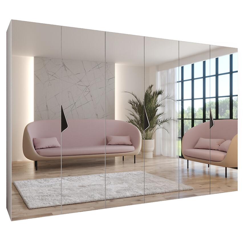 zafa Sandi 3-300 (3x100) biały/czarny – nowoczesna, przestronna szafa z lustrem o szerokości 300 cm. Połyskujące białe fronty i matowy korpus tworzą elegancki i stylowy mebel.