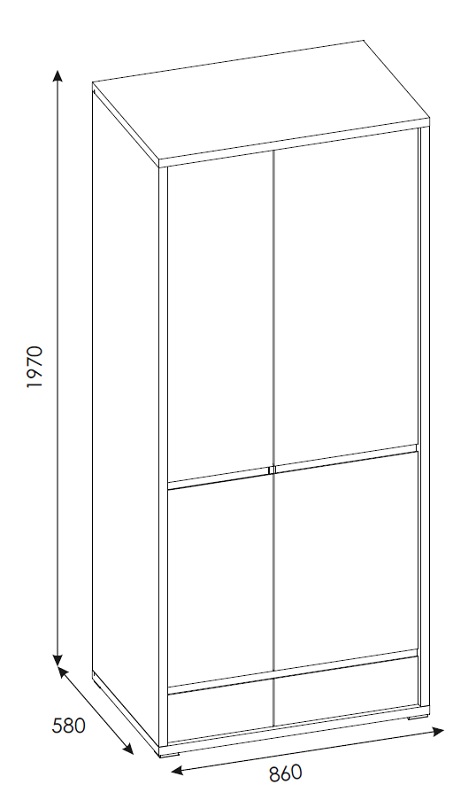 Szafa Shetland 2D-2S TYP 20 to połączenie nowoczesnego stylu, wytrzymałych materiałów i funkcjonalnego wnętrza. Dzięki niej zyskasz nie tylko przestrzeń do przechowywania, ale także elegancki element wystroju, który podkreśli charakter Twojego wnętrza.