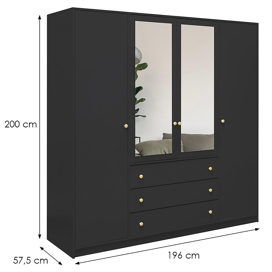 Szafa Siena w kolorze czarnym to nie tylko praktyczne rozwiązanie do przechowywania ubrań i akcesoriów, ale także elegancki element wystroju każdej sypialni. Jej klasyczny design i solidna konstrukcja sprawiają, że jest idealnym wyborem dla osób ceniących sobie ponadczasową estetykę.