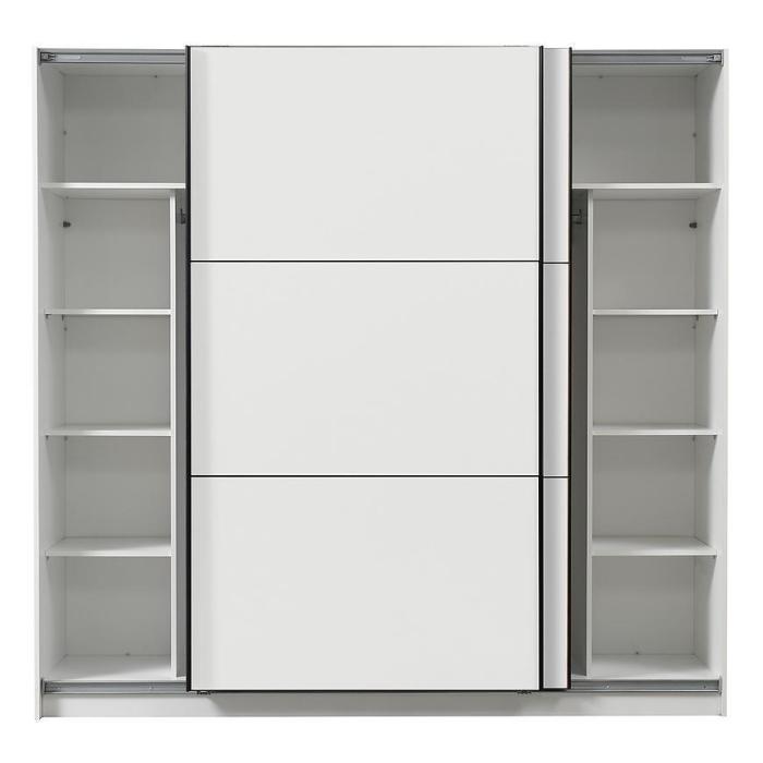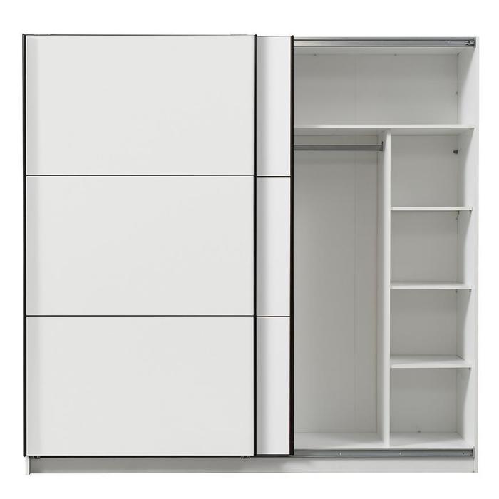 Szafa przesuwna Sierra to propozycja do pokoju dziennego, ale znajdzie swoje miejsce również w innym pomieszczeniu, jak na przykład - przedpokój czy garderobie. Materiał wykonania to płyta wiórowa laminowana. Szafa posiada półki oraz drążek na ubrania. Nowoczesny styl mebli wpadnie do gustu każdemu, kto poszukuje eleganckiego, klasycznego, a zarazem nowoczesnego umeblowania. Idealnie wpasuje się w większość aranżacji. Przeznaczona do samodzielnego montażu.