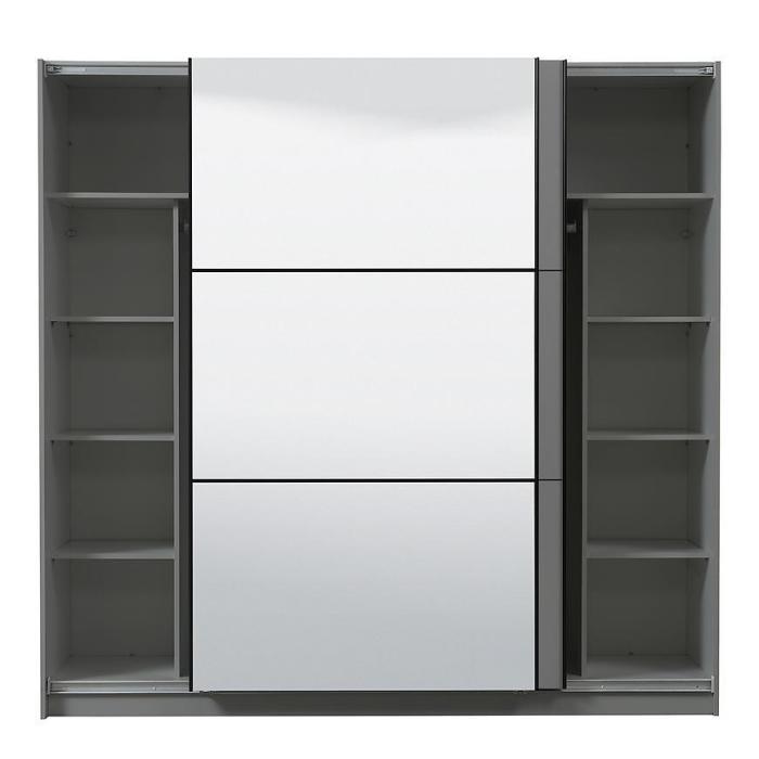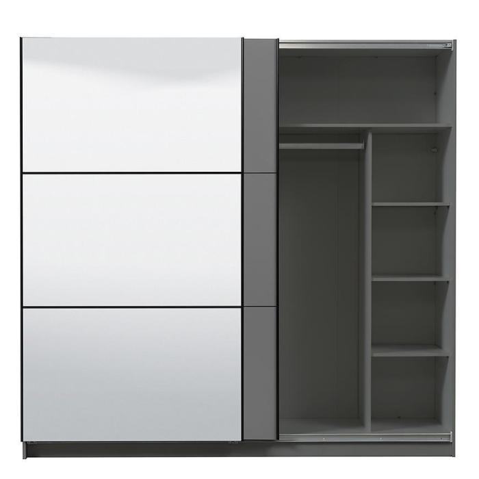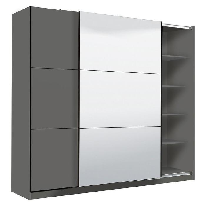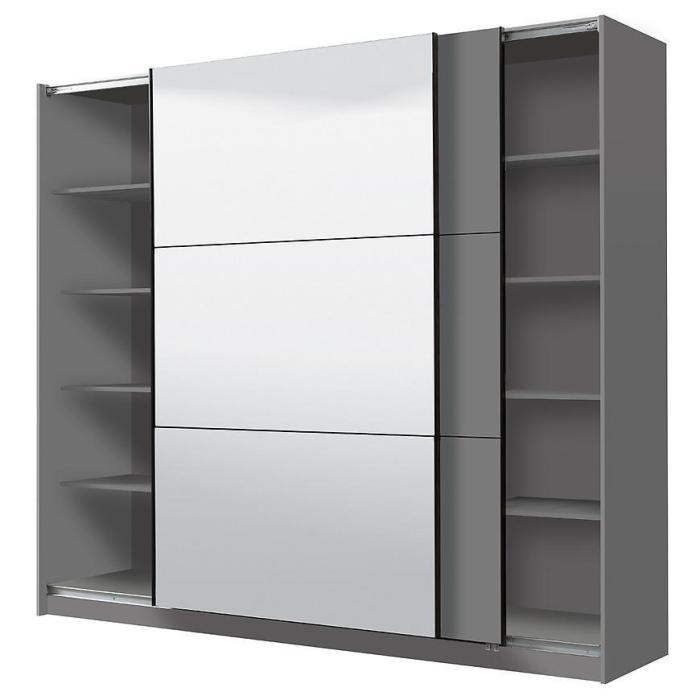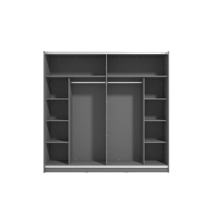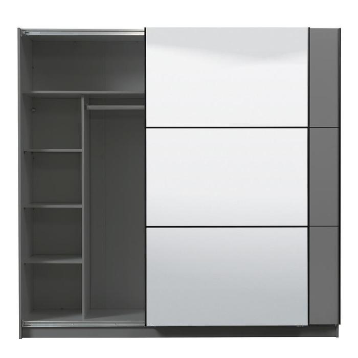 Szafa przesuwna Sierra to propozycja do pokoju dziennego, ale znajdzie swoje miejsce również w innym pomieszczeniu, jak na przykład - przedpokój czy garderobie. Materiał wykonania to płyta wiórowa laminowana. Szafa posiada półki oraz drążek na ubrania. Mebel posiada lustro, które sprawi, że pomieszczenie stanie się optycznie większe. Nowoczesny styl mebli wpadnie do gustu każdemu, kto poszukuje eleganckiego, klasycznego, a zarazem nowoczesnego umeblowania. Idealnie wpasuje się w większość aranżacji. Przeznaczona do samodzielnego montażu.