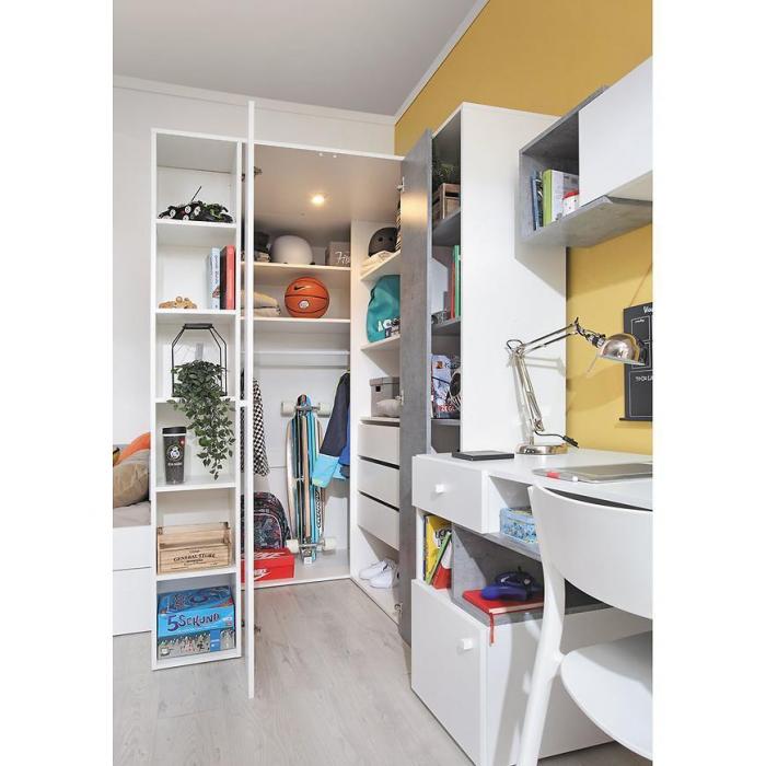 Szafa uchylna w kolorze biały lux/beton z serii Sigma to doskonała propozycja do pokoju młodzieżowego, dziennego, ale znajdzie swoje miejsce również w innym pomieszczeniu, jak na przykład - przedpokój czy garderobie, sypialni. Materiał wykonania to płyta laminowana. Szafa posiada półkę i drążek na ubrania oraz szuflady. Wygląd szafy sprawi, że wpasuje się w większość aranżacji. Szafa będzie świetnym miejscem do wieszania ubrań. Nowoczesny styl mebli wpadnie do gustu każdemu, kto poszukuje eleganckiego, klasycznego, a zarazem nowoczesnego umeblowania. Szafa przeznaczona do samodzielnego montażu.