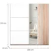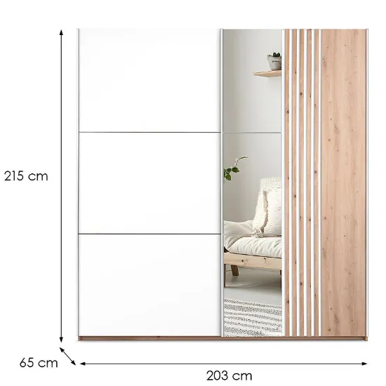 - Wymiary: 203 cm szerokości, 215 cm wysokości i 65 cm głębokości – zapewniają przestronną powierzchnię do przechowywania odzieży, akcesoriów i innych przedmiotów.
