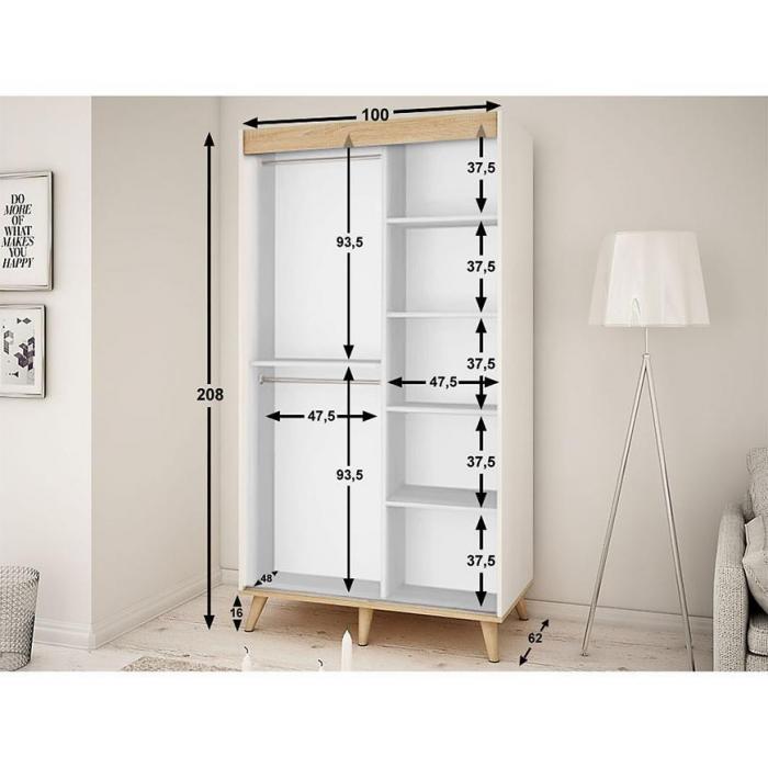 Wygląd szafy Skandi zachwyci każdego zwolennika eleganckiego, a zarazem ciekawego stylu. Szafa posiada wystarczającą ilość miejsca na ubrania oraz na inne przedmioty. Jest to niezbędny element wyposażenia w każdym domu, garderobie czy przedpokoju. Materiał wykonania to płyta wiórowa laminowana.