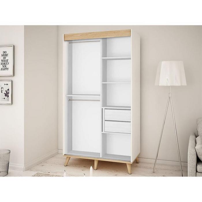 Szafa z drzwiami przesuwnymi Skandi to doskonały wybór do garderoby, przedpokoju, salonu czy sypialni. Kolor frontów i korpusu sprawiają, że wpasuje się w większość aranżacji. Jej wnętrze jest pojemne i pomieści zarówno ubrania jak i inne akcesoria. Szafa jest 2-drzwiowa.