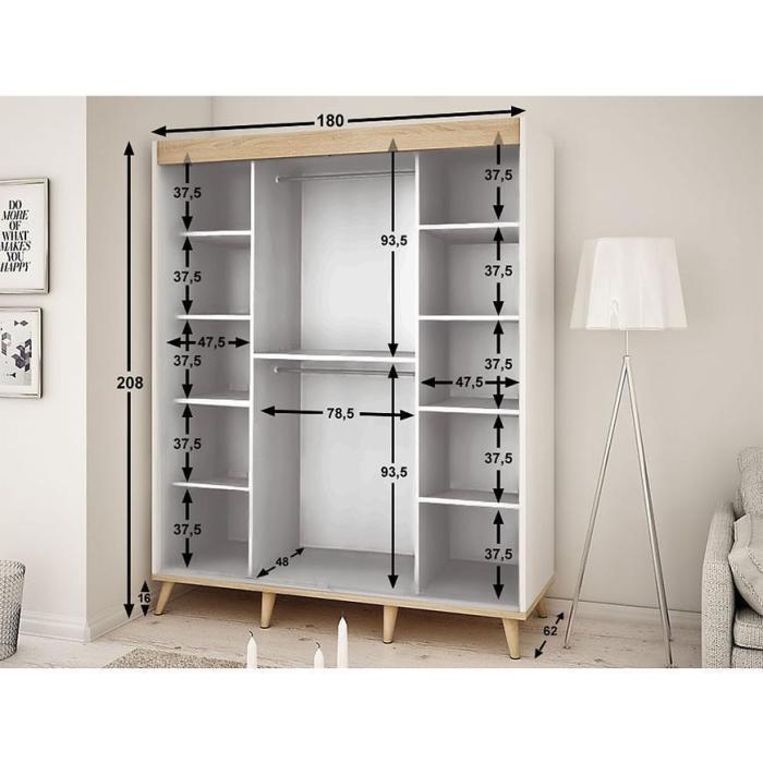 Wygląd szafy Skandi zachwyci każdego zwolennika eleganckiego, a zarazem ciekawego stylu. Szafa posiada wystarczającą ilość miejsca na ubrania oraz na inne przedmioty. Jest to niezbędny element wyposażenia w każdym domu, garderobie czy przedpokoju. Materiał wykonania to płyta wiórowa laminowana.